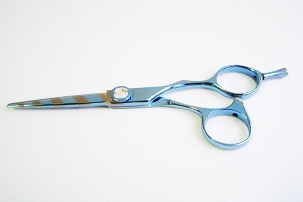 Цветные ножницы с элементами лазерного дизайна, полуэргономичная ручка удобно размещается в руке, конвекционная кромка позволяет делать легкий срез волос.